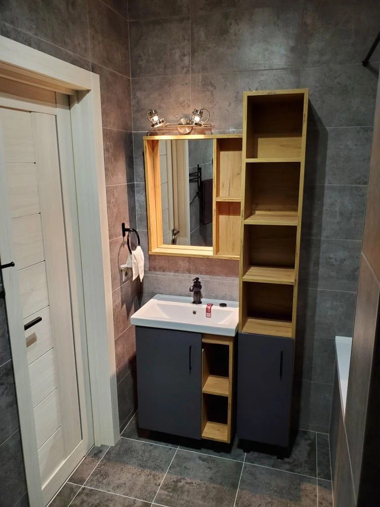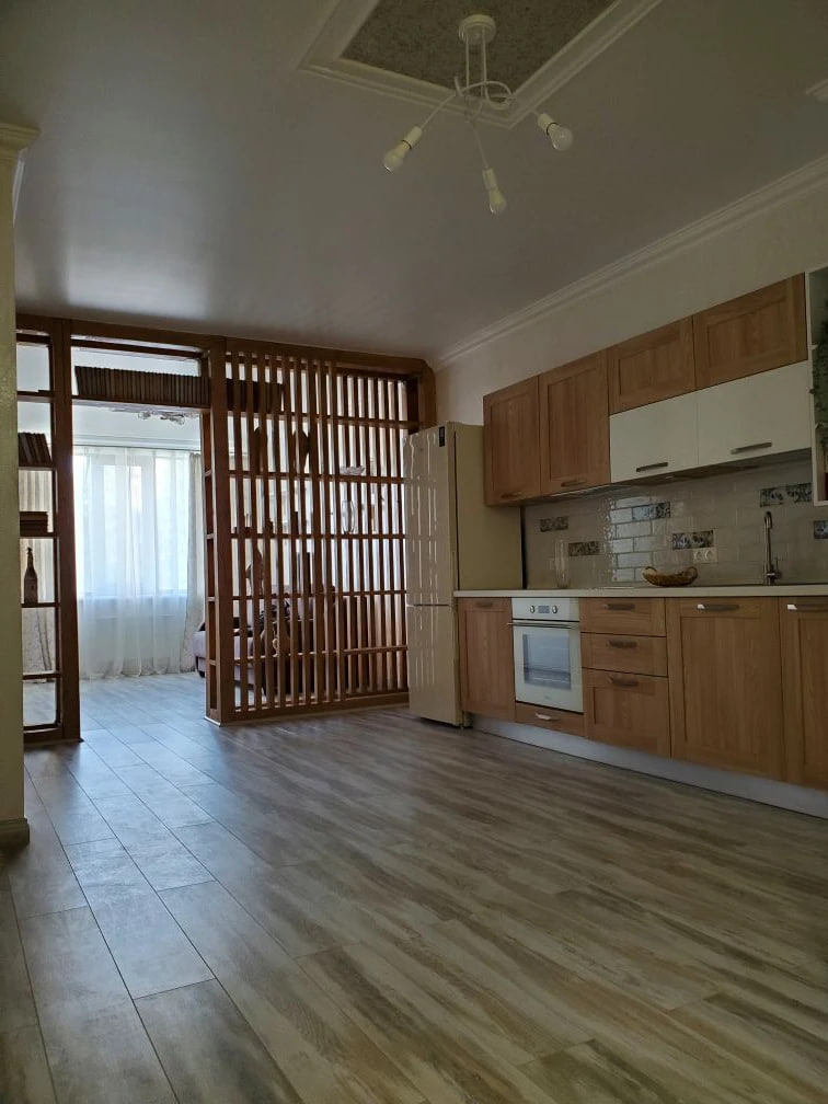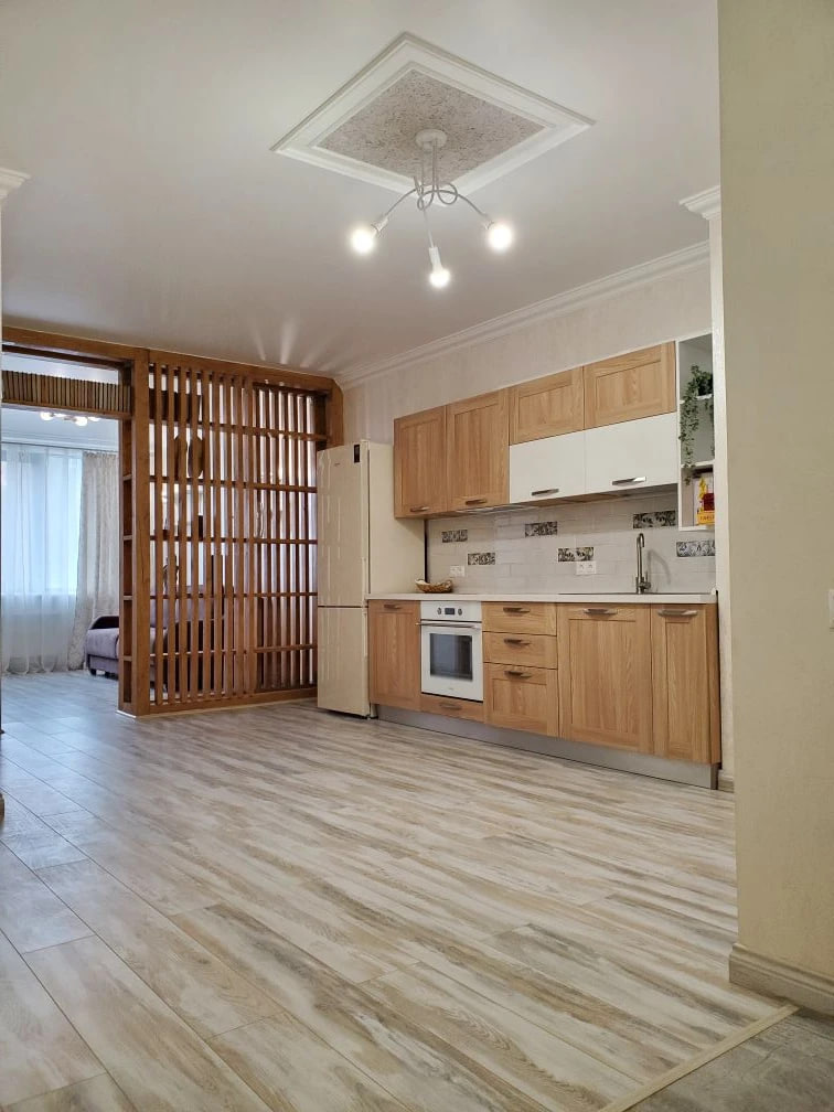 - Общая площадь квартиры составляет 60 м², и состоит из просторной кухни-гостиной площадью 30 м² и спальни - 16 м².